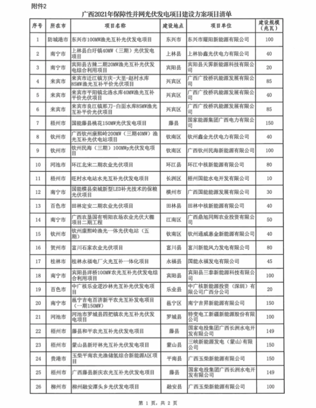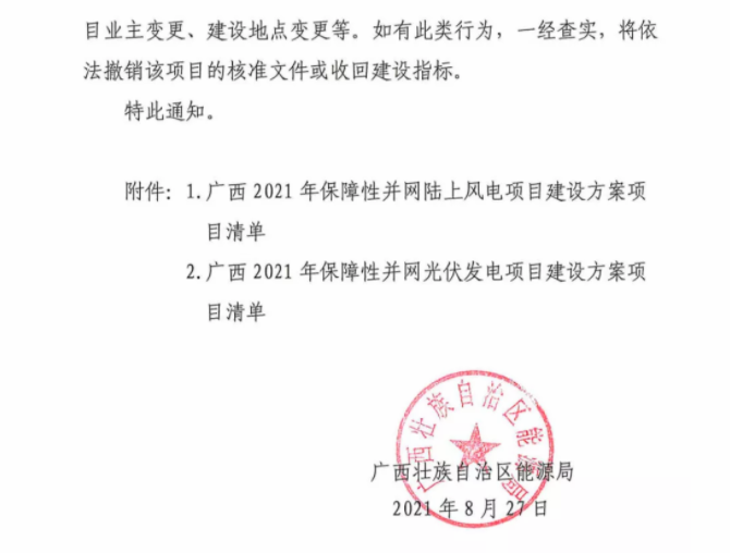 8月27日,廣西省能源局印發(fā)《關(guān)于2021年保障性并網(wǎng)陸上風(fēng)電和光伏發(fā)電項(xiàng)目建設(shè)方案的通知》。