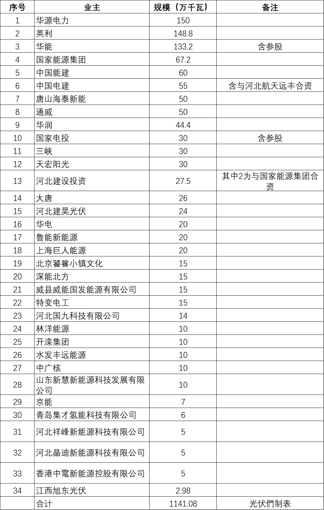 其中,華源電力憑借張家口異質(zhì)結(jié)高效太陽能光伏電池應(yīng)用示范項目,以150萬千瓦位列開發(fā)第一。其次是英利148.8萬千瓦、其后緊跟華能133.2萬千瓦、國家能源集團(tuán)67.2萬千瓦。值得注意的是,TOP 3均超過了1GW。