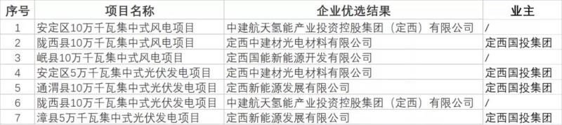 通過項目表來看,酒泉各項目業(yè)主主要以各央企在當(dāng)?shù)氐娘L(fēng)電開發(fā)企業(yè)為主。在具體規(guī)模上,國家能源投資集團(tuán)所獲項目最多為126MW,其次為中節(jié)能獲得100MW。國家電投、中廣核、華能、華電、大唐等電力央企也各自獲得約50MW的項目;定西項目名單中,有300MW為定西國有投資控股平臺獲得,中建航天200MW,國能新能源100MW。