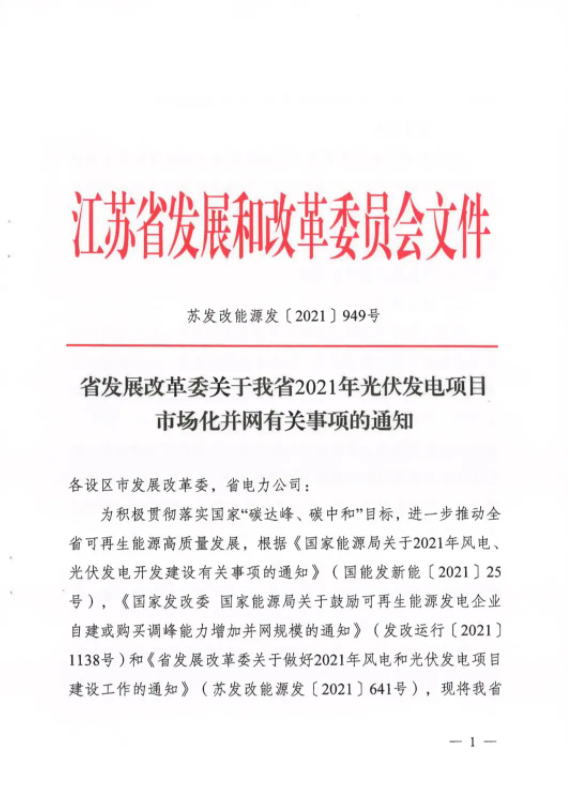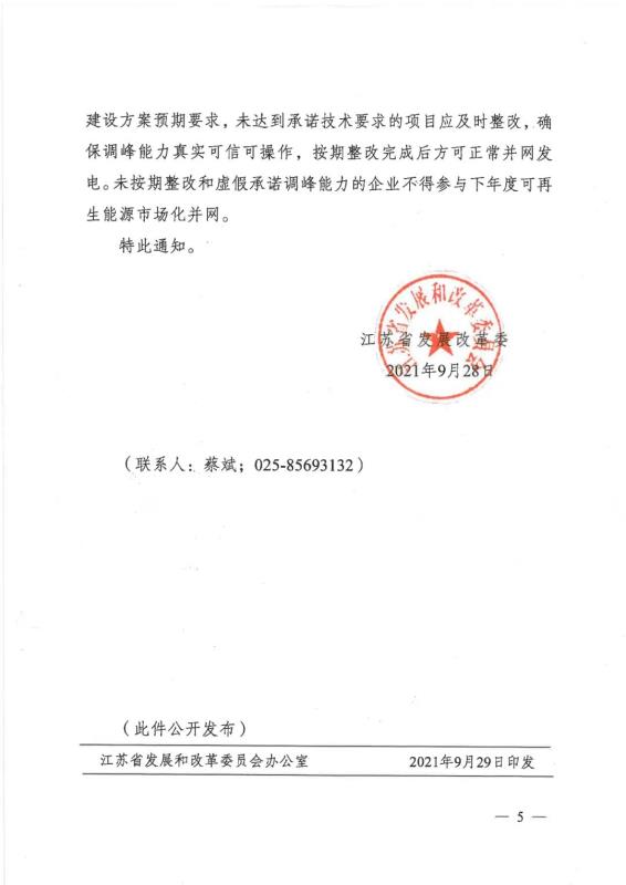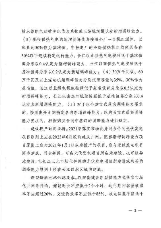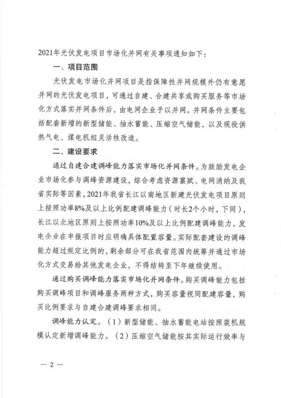 9月29日,江蘇發(fā)改委印發(fā)《省發(fā)改委關于我省2021年光伏發(fā)電項目市場化并網(wǎng)有關事項的通知》。2021年落實市場化并網(wǎng)條件的光伏發(fā)電項目:原則上應在2023年6月底前建成并網(wǎng)。配套新增調峰能力項目原則上應為2021年1月1日以后投產(chǎn)的項目,應與光伏發(fā)電項目同步建成、同步并網(wǎng),可在光伏發(fā)電項目所在地建設,也可以異地建設,但長江以北市場化并網(wǎng)的光伏發(fā)電項目所建設或購買的調峰能力原則上須在長江以北區(qū)域建成。