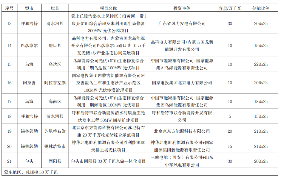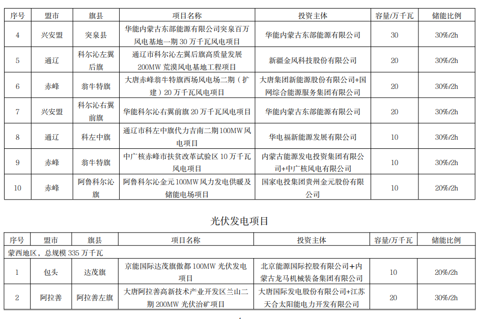其中,風電項目蒙西地區(qū)總規(guī)模500萬千瓦,蒙東地區(qū)總規(guī)模180萬千瓦;光伏項目蒙西地區(qū)總規(guī)模335萬千瓦,蒙東地區(qū)總規(guī)模50萬千瓦。