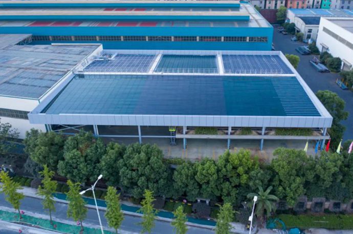 與此同時,東南網架展示中心光伏屋頂也即將投入使用,相比光伏車庫,光伏屋頂的形式多樣,滿足客戶不同功能的需求;設計承載力高,安全性可靠,屋頂也滿足裝配化要求,實現綠色、環(huán)保、高效。