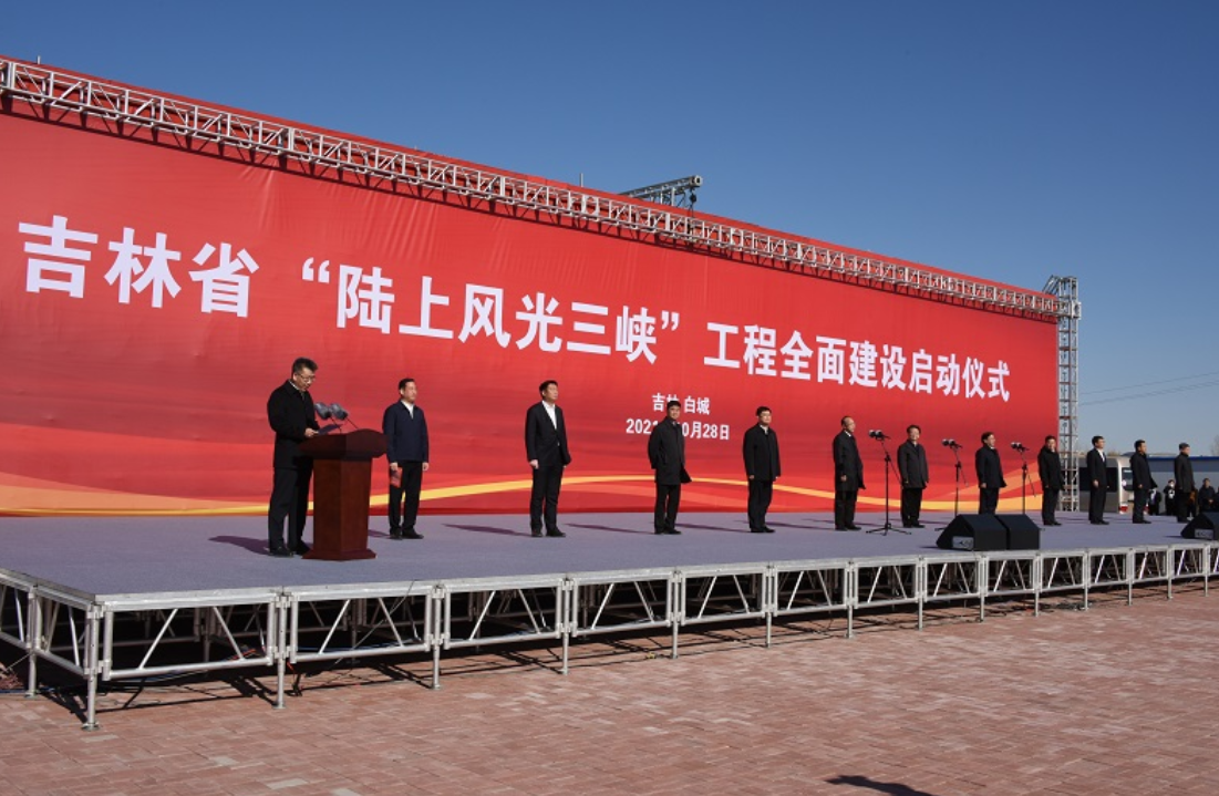 從吉林省能源局獲悉:2021年10月28日,吉林省“陸上風(fēng)光三峽”工程建設(shè)啟動(dòng)儀式在白城通榆縣八面鄉(xiāng)主會(huì)場(chǎng)舉行,省委書(shū)記景俊海、省長(zhǎng)韓俊、省委秘書(shū)長(zhǎng)胡家福、省紀(jì)委書(shū)記張忠,副省長(zhǎng)李偉,省政府秘書(shū)長(zhǎng)安桂武等省領(lǐng)導(dǎo),以及省直、白城市相關(guān)負(fù)責(zé)同志,有關(guān)縣市及相關(guān)部門(mén)干部職工、有關(guān)企業(yè)代表、施工單位人員出席,四平市、松原市主要負(fù)責(zé)同志以及相關(guān)部門(mén)負(fù)責(zé)同志分別在分會(huì)場(chǎng)出席。