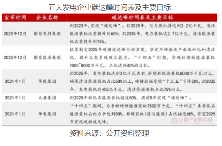 原標題 :五大發(fā)電企業(yè)碳達峰時間表及主要目標匯總,國家電投集團目標最高