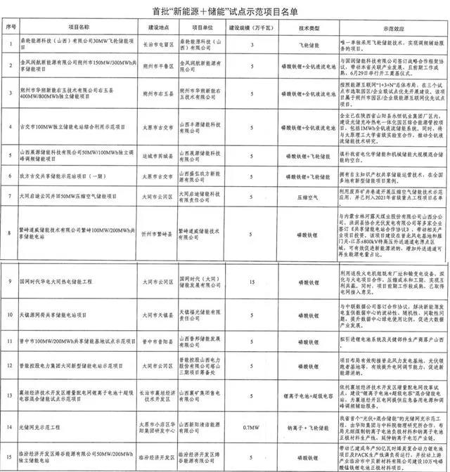 按照《關(guān)于組織首批“新能源+儲能”試點示范項目申報的通知》要求,經(jīng)項目申報和專家評審,擬將15個項目列為首批“新能源+儲能”試點示范項目;公示期間有異議的,請以書面形式向山西省發(fā)改委、山西省能源局、山西能監(jiān)辦反映。