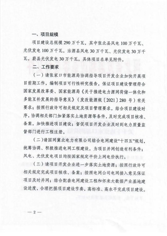 據(jù)河北省發(fā)展和改革委員會(huì)消息,該委日前發(fā)布關(guān)于《張家口源網(wǎng)荷儲(chǔ)一體化碳中和示范項(xiàng)目計(jì)劃》(以下簡稱《計(jì)劃》的通知。根據(jù)《計(jì)劃》,張家口地區(qū)將投資建設(shè)290萬千瓦源網(wǎng)荷儲(chǔ)一體化碳中和示范項(xiàng)目。