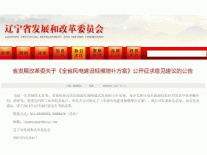 12月14日,遼寧省發(fā)改委發(fā)布關(guān)于《全省風(fēng)電建設(shè)規(guī)模增補方案》公開征求意見建議的公告,據(jù)公告顯示,本次新增風(fēng)電示范項目規(guī)模140萬千瓦,其中,沈陽市30萬千瓦、大連市20萬千瓦、阜新市40萬千瓦、鐵嶺市50萬千瓦。鼓勵配套建設(shè)不少于風(fēng)電裝機規(guī)模15%(時長4小時以上)的新型儲能設(shè)施。
