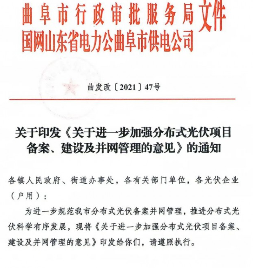 據(jù)中國電力網(wǎng)報道:近日(12月10日),山東省曲阜市發(fā)改局發(fā)布《關(guān)于進(jìn)一步加強(qiáng)分布式光伏項目備案、建設(shè)及并網(wǎng)管理的意見》,意見指出,要規(guī)范分布式光伏違約私自增容處理: