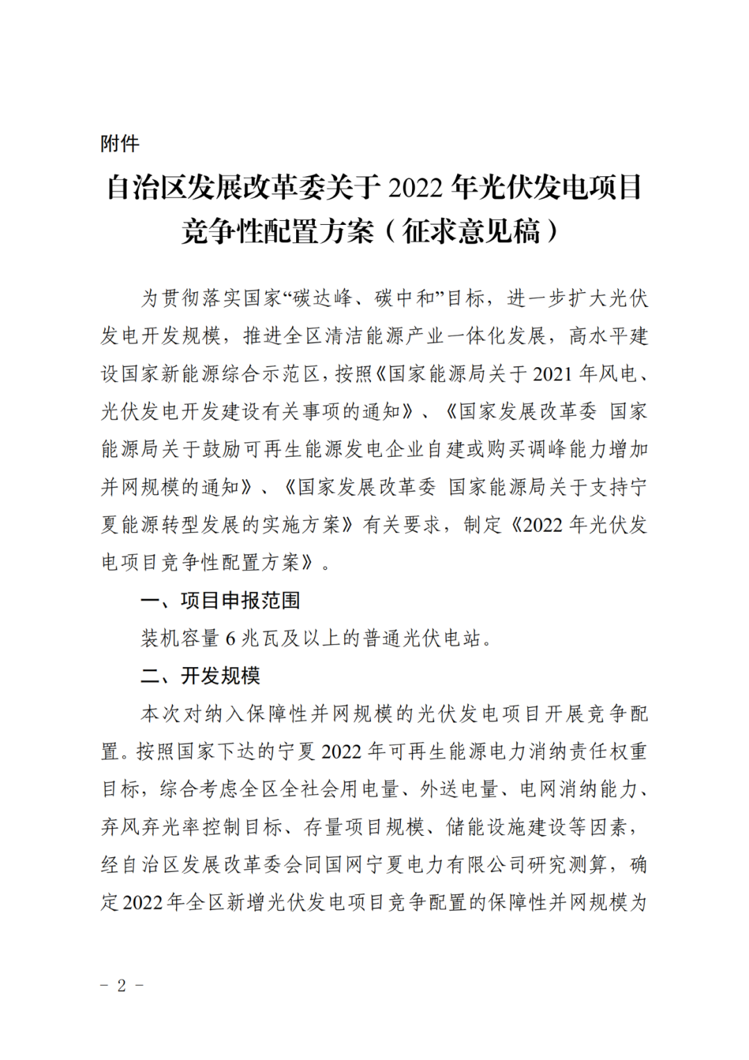 寧夏發(fā)改委就《2022年光伏發(fā)電項目競爭性配置方案》征求意見