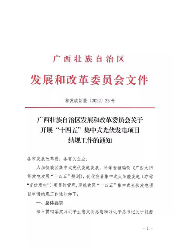 1月8日,廣西發(fā)改委印發(fā)《開展"十四五"集中式光伏發(fā)電項(xiàng)目納規(guī)工作的通知》,就建立集中式光伏規(guī)劃項(xiàng)目庫給出指導(dǎo)意見。