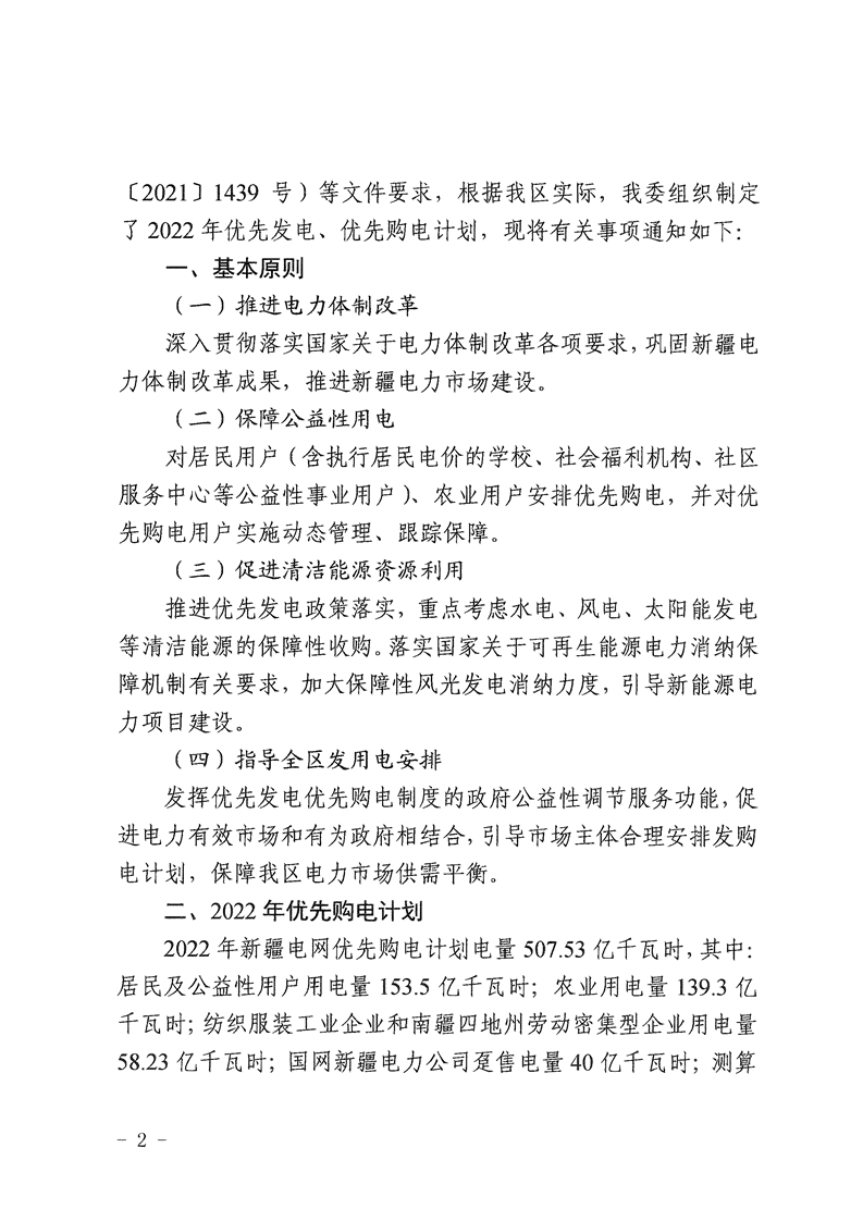 1月18日,新疆發(fā)改委印發(fā)關(guān)于2022年新疆電網(wǎng)優(yōu)先發(fā)電優(yōu)先購電計(jì)劃的通知,推進(jìn)優(yōu)先發(fā)電政策落實(shí),重點(diǎn)考慮水電、風(fēng)電、太陽能發(fā)電等清潔能源的保障性收購。落實(shí)國家關(guān)于可再生能源消納保障機(jī)制有關(guān)要求,加大保障性風(fēng)光風(fēng)電消納力度,引導(dǎo)新能源電力項(xiàng)目建設(shè)。關(guān)于2022年優(yōu)先發(fā)電計(jì)劃,通知明確:風(fēng)電機(jī)組安排優(yōu)先發(fā)電計(jì)劃79.34億千瓦