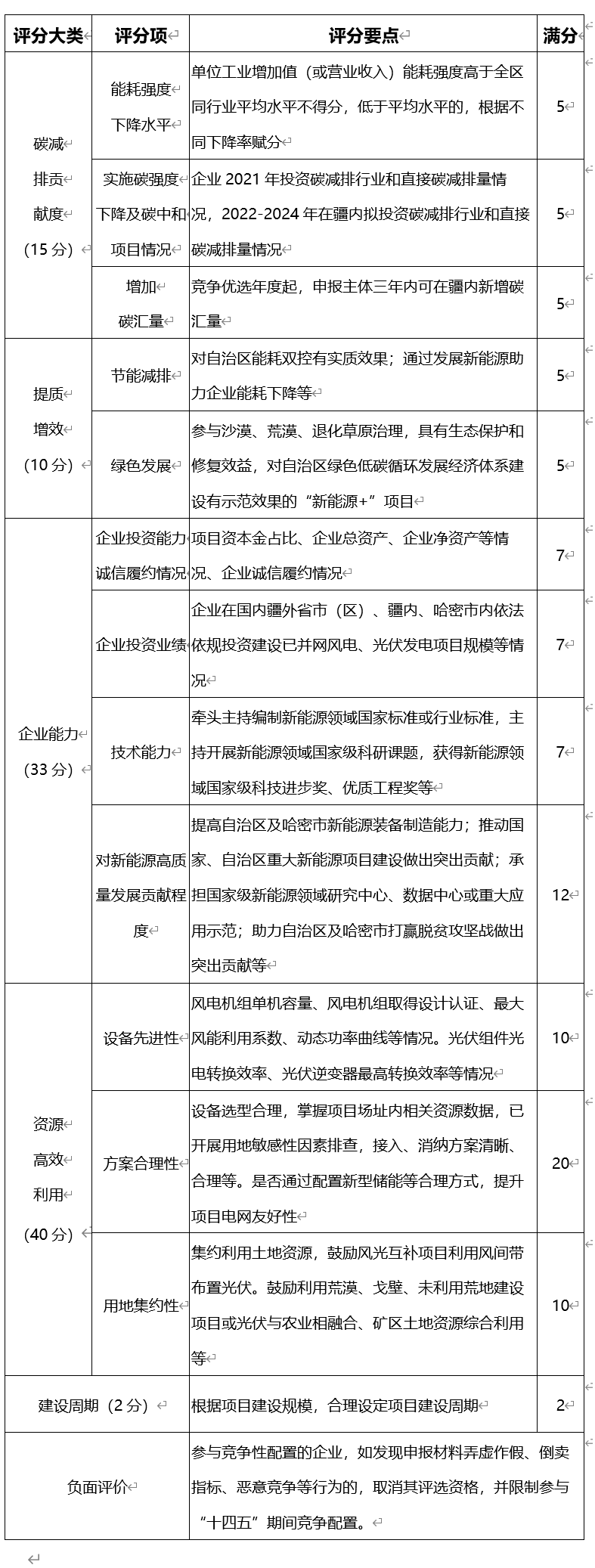 競爭配置項目實施方案應(yīng)包含碳減排貢獻度、提質(zhì)增效、企業(yè)能力、技術(shù)方案、設(shè)備先進性、儲能調(diào)峰措施、對新能源高質(zhì)量發(fā)展貢獻程度、社會及經(jīng)濟效益、前期工作深度等競爭要素,需注意以下要點: