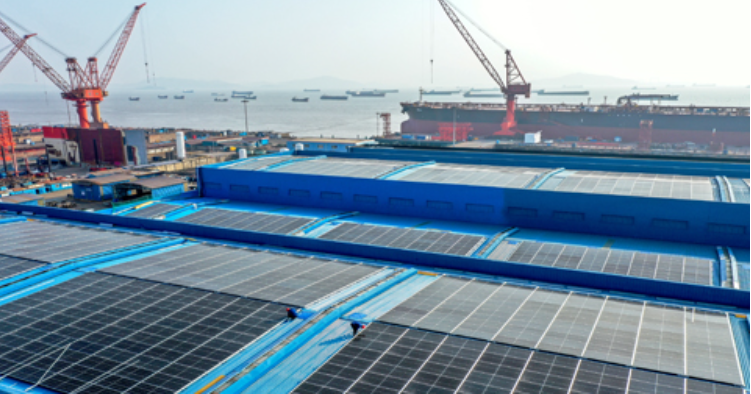 近日,浙江省首個(gè)“不拆瓦”BIPV(光伏建筑一體化)屋頂光伏項(xiàng)目——舟山市萬邦船舶重工有限公司(二期)分布式光伏正式投運(yùn)。據(jù)悉,萬邦船廠5個(gè)光伏項(xiàng)目并網(wǎng)后,預(yù)計(jì)每年發(fā)電可達(dá)650萬度電,相當(dāng)于節(jié)省原煤消耗2626噸、減少二氧化碳近5148噸,為舟山清潔能源發(fā)展貢獻(xiàn)力量,為海島“雙碳”目標(biāo)實(shí)現(xiàn)提供重要支撐。