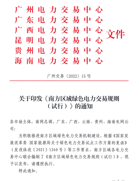 南方區(qū)域綠色電力交易規(guī)則
