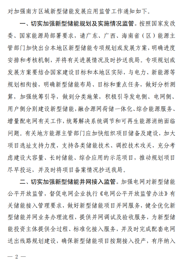 近日,南方能源監(jiān)管局根據國家發(fā)展改革委、國家能源局加快新型儲能發(fā)展應用系列政策部署要求,針對新型儲能發(fā)展規(guī)劃建設、并網調度、市場交易及運行管理等各個工作環(huán)節(jié),全面研究貫徹落實監(jiān)管措施和任務,制定印發(fā)《關于加強南方區(qū)域新型儲能發(fā)展應用監(jiān)管工作的通知》(以下簡稱《通知》)。