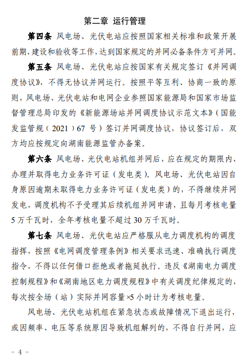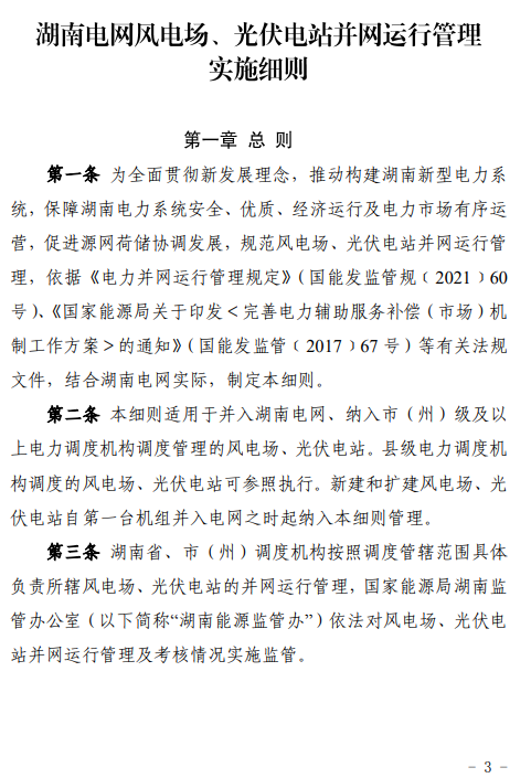 本細則適用魚并入湖南電網、納入市(州)級及以上電力調度機構調度管理的風電場、光伏電站。新建和擴建風電場、光伏電站自第一臺機組并入電網之時起納入本細則管理。