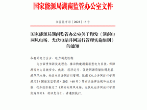 近日,國家能源局湖南監(jiān)管辦公室印發(fā)《湖南電網風電場、光伏電站并網運行管理實施細則》的通知,促進源網荷儲協(xié)調發(fā)展,規(guī)范風電場、光伏電站并網運行管理。