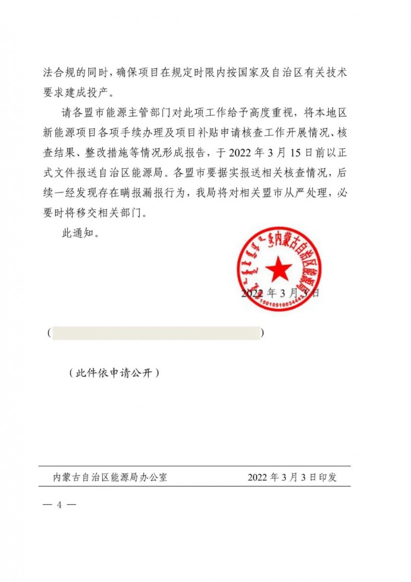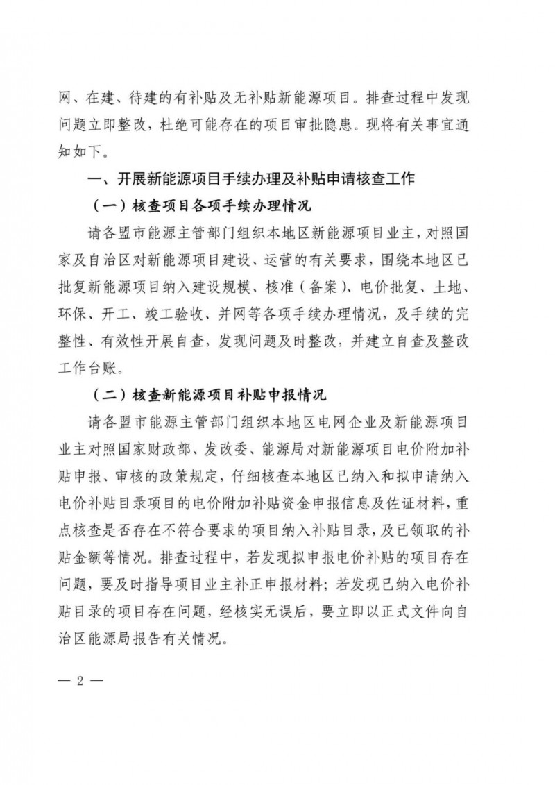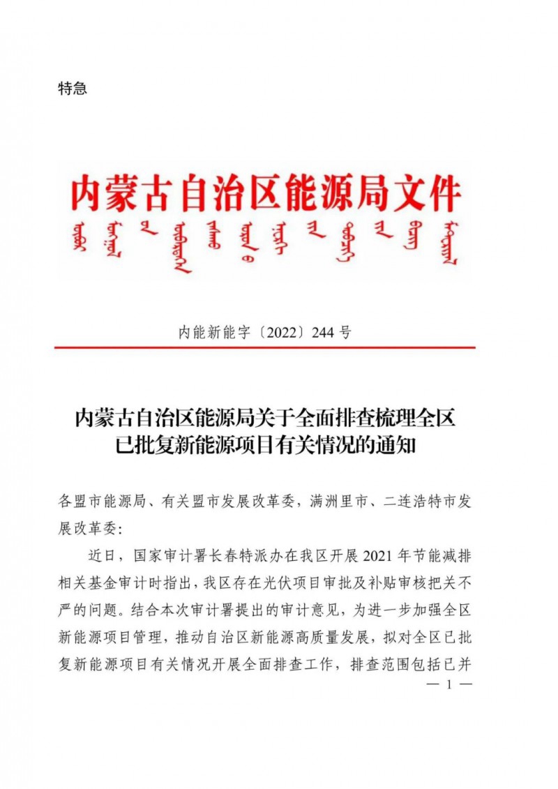 內(nèi)蒙古能源局9日下發(fā)《關(guān)于全面排查梳理全區(qū)已批復(fù)新能源項目有關(guān)情況的通知》緊急通知,針對光伏項目審批及補(bǔ)貼審核把關(guān)不嚴(yán)的問題,擬對全區(qū)已批復(fù)新能源項目有關(guān)情況開展全面排查工作,排查范圍包括已并網(wǎng)、在建、待建的有補(bǔ)貼及無補(bǔ)貼新能源項目。