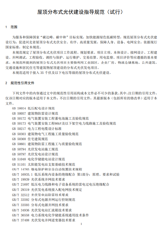 屋頂分布式光伏建設指導規(guī)范(試行)