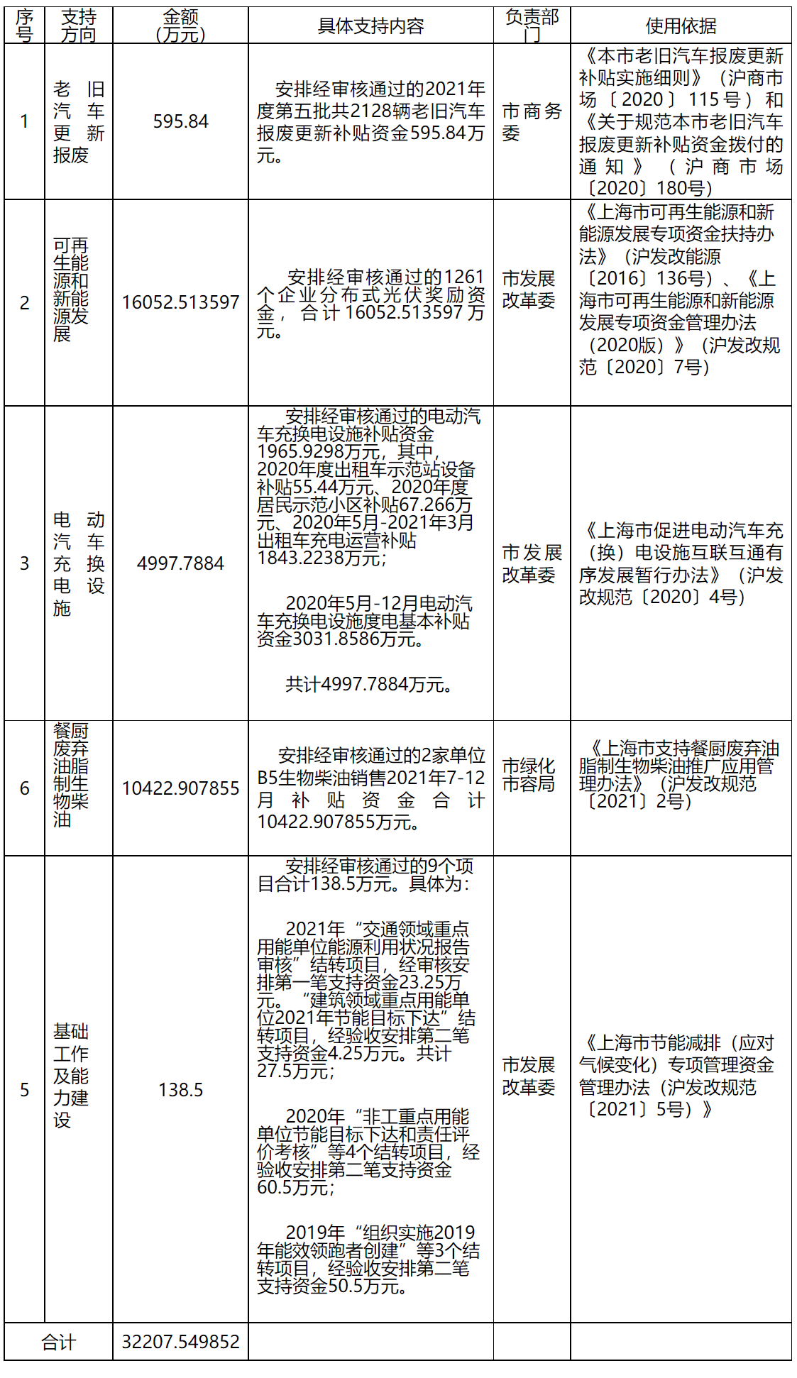 上海2022年節(jié)能減排專項(xiàng)資金安排計(jì)劃 (第一批)共5項(xiàng),計(jì)劃下達(dá)節(jié)能減排專項(xiàng)資金32207.549852萬(wàn)元。