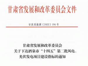 4月6日,甘肅省發(fā)改委下發(fā)《關(guān)于下達(dá)酒泉市“十四五”第二批風(fēng)電、光伏發(fā)電項目建設(shè)指標(biāo)的通知》。第二批風(fēng)電、光伏發(fā)電項目指標(biāo)400萬千瓦,其中風(fēng)電200萬千瓦,光伏發(fā)電200萬千瓦,均為市場化消納項目,實施時間為2023-2024年(包括專項安排敦煌市100萬千瓦),