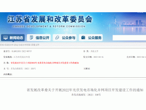 從江蘇省發(fā)改委官網(wǎng)獲悉:4月12日,江蘇省發(fā)展改革委發(fā)布關(guān)于開展2022年光伏發(fā)電市場化并網(wǎng)項(xiàng)目開發(fā)建設(shè)工作的通知,要求各投資開發(fā)企業(yè)可于本通知發(fā)布之日起在“江蘇省新能源管理平臺”進(jìn)行項(xiàng)目申報(bào),形成集中式光伏發(fā)電項(xiàng)目庫,所有申報(bào)項(xiàng)目首先納入項(xiàng)目儲備庫。