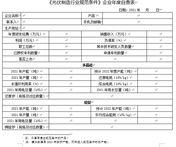 《光伏制造行業(yè)規(guī)范條件》企業(yè)年度自查表