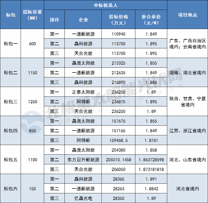 華潤此次組件招標(biāo)總?cè)萘?100MW,共分6個(gè)標(biāo)包,其中標(biāo)包一600MW、標(biāo)包二1150MW、標(biāo)包三1250MW、標(biāo)包四850MW、標(biāo)包五1100MW、標(biāo)包六150MW。