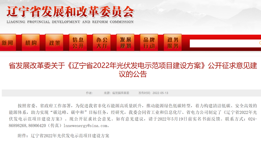 遼寧省 2022 年光伏發(fā)電 示范項(xiàng)目建設(shè)方案