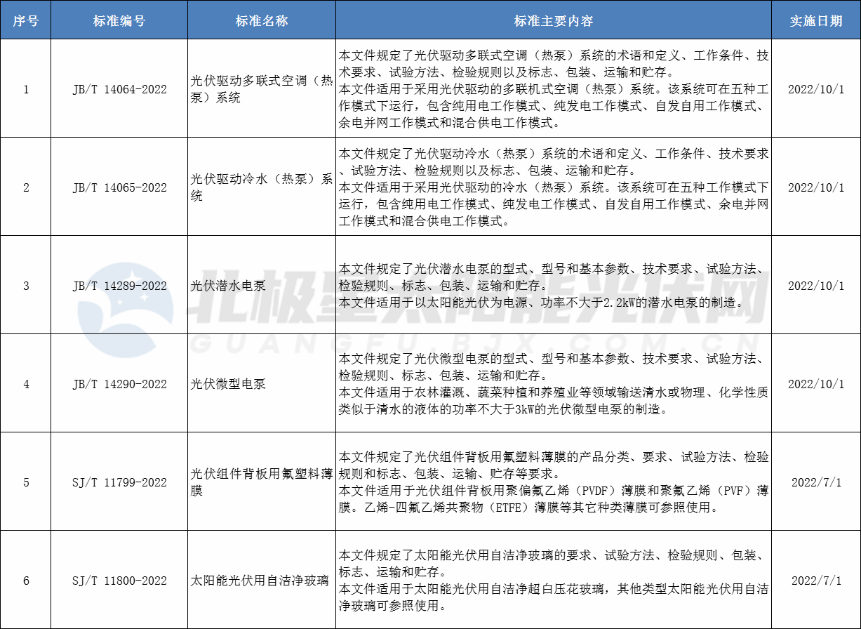 六項(xiàng)光伏標(biāo)準(zhǔn)主要內(nèi)容如下: