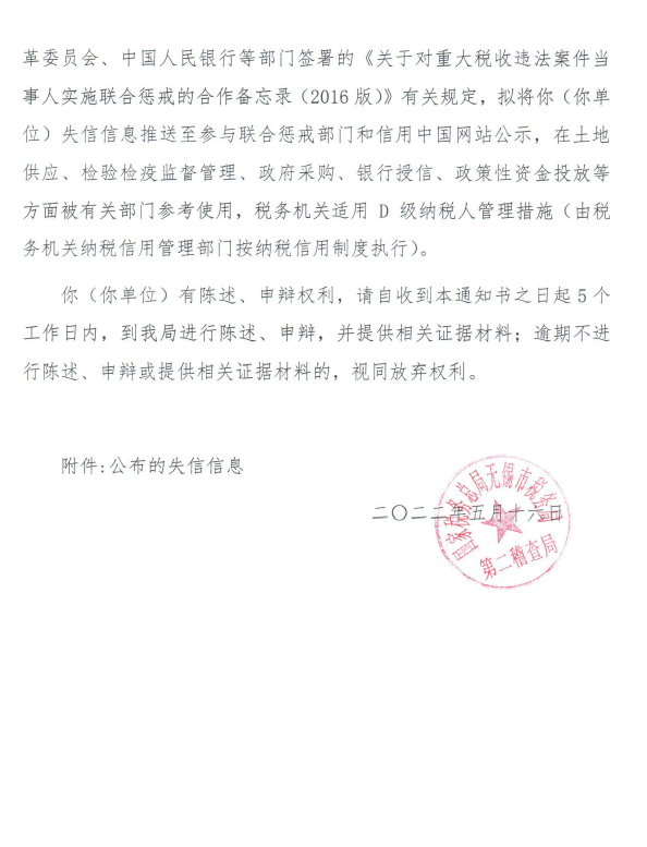5月17日,國家稅務(wù)總局江蘇省稅務(wù)局發(fā)布“國家稅務(wù)總局無錫市稅務(wù)局第二稽查局關(guān)于送達(dá)稅務(wù)事項通知書(重大稅收違法失信主體告知適用)的通告(江陰賽格光伏科技有限公司)”。
