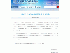日前,江蘇省發(fā)展和改革委員會發(fā)布關于公布2022年第一批光伏發(fā)電市場化并網項目名單的通知。