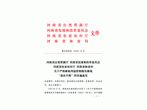 2022年5月25日,河南省自然資源廳、河南省發(fā)展和改革委員會、河南省農(nóng)業(yè)農(nóng)村廳、河南省林業(yè)局印發(fā)《關于嚴格耕地用途管制落實耕地“進出平衡”的實施意見》,其中強調,規(guī)范光伏、風力發(fā)電項目占用耕地管理。鼓勵引導光伏、風電項目建設利用荒山荒坡等未利用地,嚴禁占用永久基本農(nóng)田。