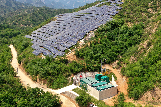 在河北省平山縣營里鄉(xiāng)建成投運的首個兆瓦級新型電力系統(tǒng)示范工程。(攝影:馬千里)
