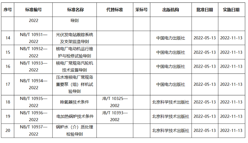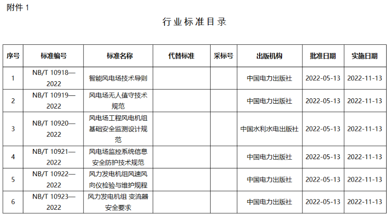 7日從國家能源局官網(wǎng)獲悉:國家能源局發(fā)布2022年第4號公告,根據(jù)《中華人民共和國標(biāo)準(zhǔn)化法》《能源標(biāo)準(zhǔn)化管理辦法》,批準(zhǔn)《智能風(fēng)電場技術(shù)導(dǎo)則》等209項(xiàng)能源行業(yè)標(biāo)準(zhǔn)(附件1)、《Specification for Preparation of Feasibility Study Report for Photovoltaic Powe