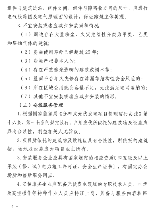 通知強調(diào),項目業(yè)主和安裝企業(yè)應(yīng)重視項目安全,嚴格質(zhì)量標準,嚴格按照規(guī)定流程進行項目建設(shè),做好長期運維保障,對存在違規(guī)行為的企業(yè)依法依規(guī)實施懲戒,對于屢次整改不到位的企業(yè),視情節(jié)嚴重列入限制開發(fā)名單,限制開發(fā)新的光伏發(fā)電項目。