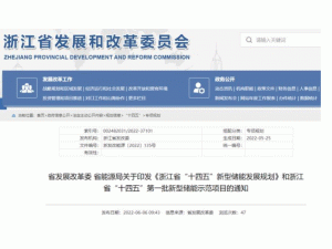 6月6日,浙江省發(fā)展改革委、浙江省能源局聯(lián)合印發(fā)《浙江省“十四五”新型儲能發(fā)展規(guī)劃》,遴選出省“十四五”第一批新型儲能示范項目,力求引導(dǎo)浙江省新型儲能健康、有序發(fā)展。