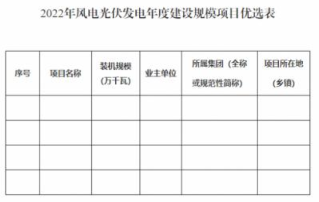 三、報(bào)送要求。請各市(州)能源主管部門高度重視項(xiàng)目優(yōu)選上報(bào)工作,于2022年6月27日前將優(yōu)選項(xiàng)目上報(bào),逾期未上報(bào)的視為放棄。對優(yōu)選項(xiàng)目和企業(yè)不符合要求的,我局將從上報(bào)的項(xiàng)目庫中擇優(yōu)確定。對不超過區(qū)域電網(wǎng)消納能力的項(xiàng)目,我局將根據(jù)全省新能源產(chǎn)業(yè)發(fā)展實(shí)際統(tǒng)籌。