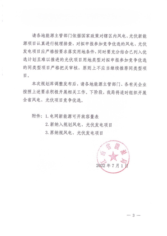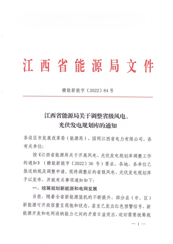 7月1日,江西省能源局下發(fā)《關(guān)于調(diào)整省級風(fēng)電、光伏發(fā)電規(guī)劃庫的通知》,要求統(tǒng)籌規(guī)劃新能源和電網(wǎng)發(fā)展,引導(dǎo)企業(yè)有序開發(fā)理性投資。根據(jù)通知,新納入規(guī)劃風(fēng)光項目687個,共計4181.64萬千瓦。其中,576個風(fēng)電、光伏項目共計3359.35萬千瓦。