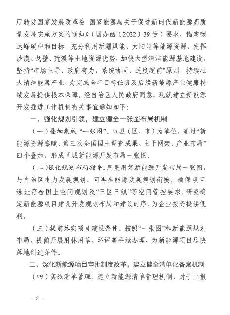 近日,新疆自治區(qū)發(fā)改委、自然資源廳、生態(tài)環(huán)境廳、林業(yè)和草原局、國網(wǎng)新疆電力聯(lián)合下發(fā)《關(guān)于建立新能源開發(fā)管理工作機(jī)制的通知》,發(fā)布新能源開發(fā)管理十大機(jī)制30條措施,旨在進(jìn)一步理順新能源項(xiàng)目建設(shè)工作機(jī)制,著力解決在新能源項(xiàng)目建設(shè)中存在的項(xiàng)目布局小而散碎片化、開工前手續(xù)辦理周期較長、新能源項(xiàng)目源網(wǎng)不匹配不同步等問題,打通項(xiàng)目建設(shè)中堵點(diǎn)、難點(diǎn)、痛點(diǎn),推動(dòng)我區(qū)新能源產(chǎn)業(yè)健康高質(zhì)量發(fā)展。