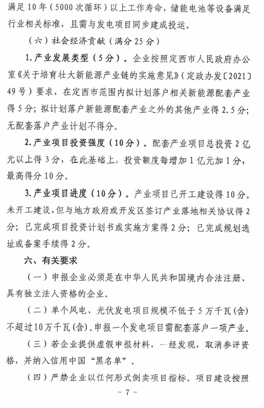 日前,根據(jù)《定西市發(fā)展和改革委員會關于印發(fā)定西市風電、光伏發(fā)電項目競爭配置實施方案的通知》,定西市安定區(qū)5萬千瓦集中式光伏發(fā)電項目進行公開競爭配置,要求單個風電、光伏發(fā)電項目規(guī)模不低于5萬千瓦(含)不超過10萬千瓦(含),申報一個發(fā)電項目需配套落戶一項產業(yè)。優(yōu)先支持風光儲一體化、多能互補項目鼓勵采用新技術、新模式配置儲能設施。必須于當年開工建設、2022年底前全容量建成投產。