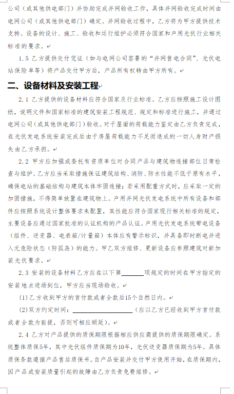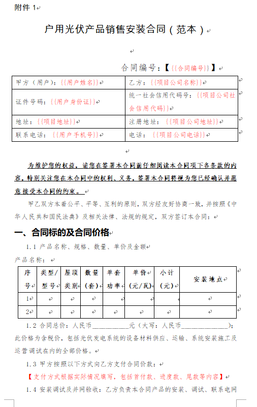 1. 《戶用光伏產(chǎn)品銷售安裝合同(范本)》