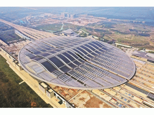 京雄城際鐵路雄安站站頂分布式光伏電站總裝機(jī)容量6000千瓦,站頂鋪設(shè)1.77萬塊、4.2萬平方米多晶硅光伏組件,電站采用自發(fā)自用、余電上網(wǎng)模式,自2020年12月正式并網(wǎng)發(fā)電以來,已累計(jì)發(fā)電超過1000萬千瓦時(shí)。