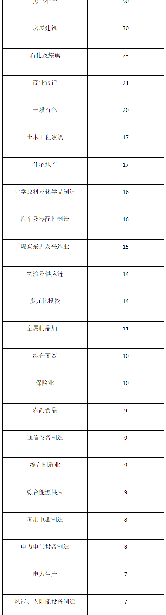 中國企業(yè)500強的行業(yè)結(jié)構(gòu)持續(xù)調(diào)整。榜單中,黑色冶金、石化及煉焦分別增加6家和4家,工業(yè)機械及設(shè)備制造業(yè)、動力和儲能電池業(yè)、多元化投資業(yè)均增