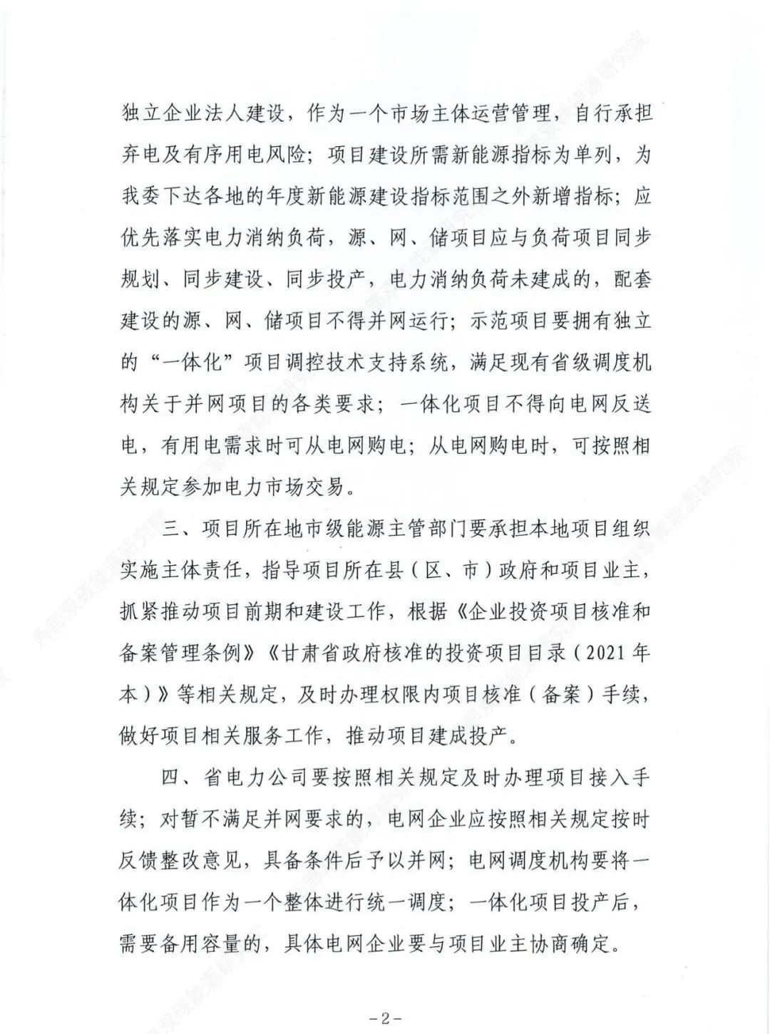 9月9日,甘肅省發(fā)改委印發(fā)《關于開展“十四五”首批電力源網荷儲一體化項目試點的通知》,酒泉經濟技術開發(fā)區(qū)20萬千瓦、甘肅慶陽“東數西算”智慧零碳大數據產業(yè)園、酒泉恒瑞新公司瓜州北大橋等3個項目建設方案,列為“十四五”首批電力源網荷儲一體化試點項目。其中風電55萬千瓦,光伏35萬千瓦,儲能18萬千瓦/36萬千瓦時。