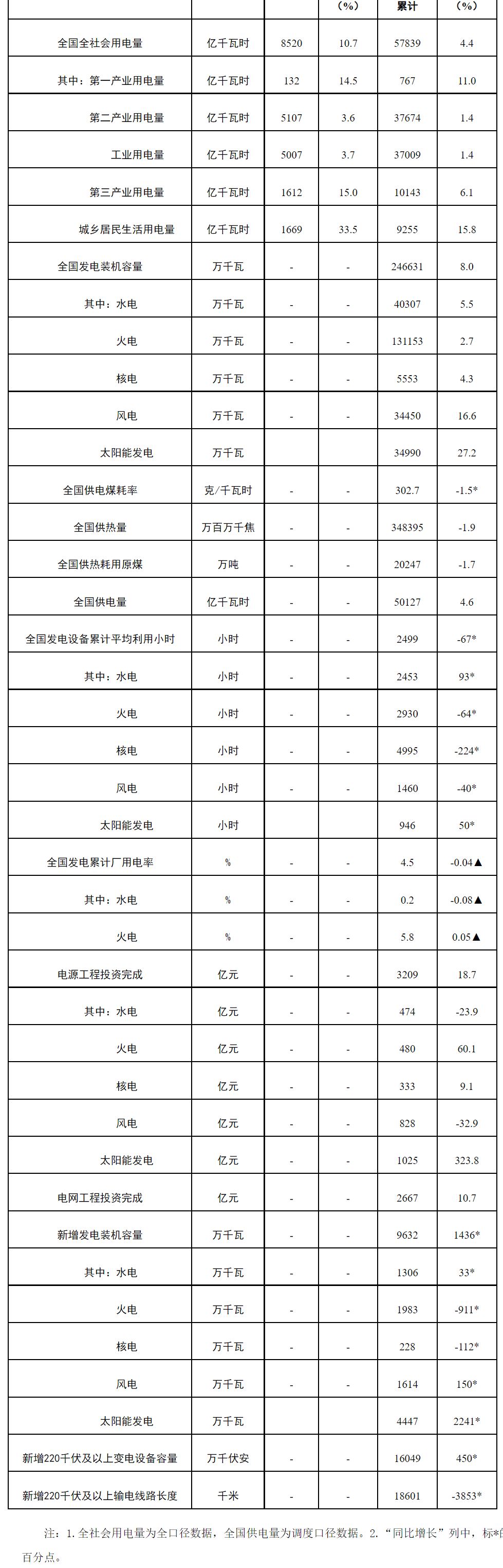 9月21日,國家能源局發(fā)布1-8月份全國電力工業(yè)統(tǒng)計數(shù)據(jù)。截至8月底,全國發(fā)電裝機容量約24.7億千瓦,同比增長8.0%。其中,風電裝機容量約3.4億千瓦,同比增長16.6%;太陽能發(fā)電裝機容量約3.5億千瓦,同比增長27.2%。