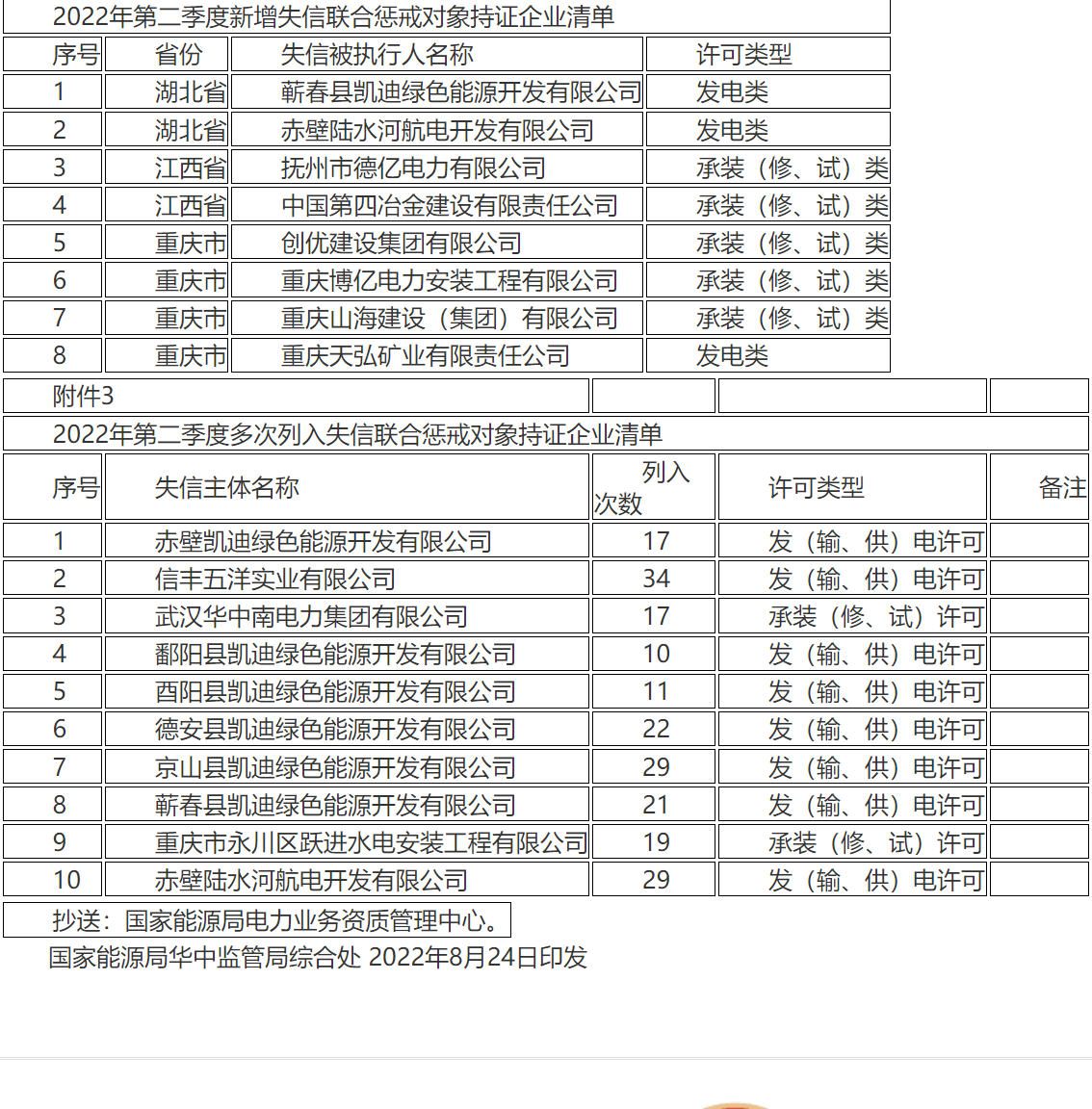 3.2022年第二季度多次列入失信聯(lián)合懲戒對(duì)象持證企業(yè)清單
