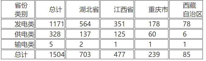 截止2022年6月30日,華中能源監(jiān)管局共向1504家企業(yè)頒發(fā)了電力業(yè)務(wù)許可證,其中發(fā)電類1171家、供電類328家、輸電類5家。按地域劃分,湖北省703家、江西省477家、重慶市239家、西藏自治區(qū)85家。