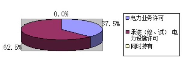 從許可類型分布看,電力業(yè)務(wù)許可(發(fā)電類、輸電類、供電類)企業(yè)共新增3家,占新增持證企業(yè)總數(shù)的37.5%;承裝(修、試) 電力設(shè)施許可企業(yè)共新增5家,占新增持證企業(yè)總數(shù)的62.5%。