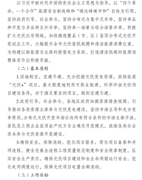 具體目標(biāo)上,《實(shí)施意見(jiàn)》提出,到2025年底全市確保新增光伏裝機(jī)并網(wǎng)容量136萬(wàn)千瓦,力爭(zhēng)新增光伏裝機(jī)并網(wǎng)容量161萬(wàn)千瓦,累計(jì)光伏裝機(jī)并網(wǎng)容量達(dá)到280萬(wàn)千瓦以上,光伏裝機(jī)規(guī)模占本地發(fā)電機(jī)組比重超過(guò)18%。